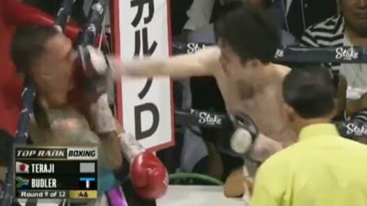 En domination sur les premières reprises, Kenshiro Teraji va finalement accélérer au point que son adversaire du jour ne puisse plus surenchérir. Les minutes passent et Hekkie Budler ne parvient plus à suivre le débit de frappes de son adversaire et se fera toucher à de nombreuses reprises durant le neuvième round avant de finalement être ébranlé. C’est après un enchaînement spectaculaire de la part du Japonais que le Sud-Africain sera finalement déclaré KO, subissant ainsi sa cinquième défaite en carrière professionnelle. Le prodige de Kyoto conservera quant à lui ses ceintures The Ring, WBC et WBA.