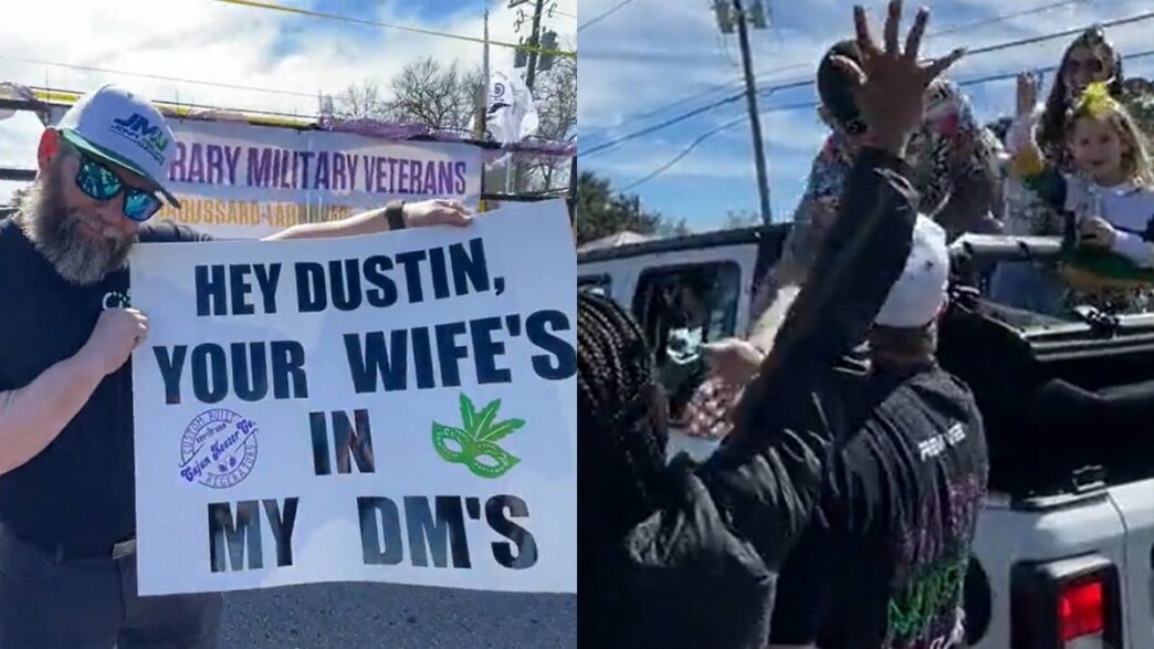 Dustin Poirier était à bord de l’arrière d’une voiture avec le reste de sa famille. Quelques dizaines de personnes étaient réunies dans la rue pour pouvoir les voir défiler. C’est ici qu’un homme a eu l’idée de se ramener avec une pancarte. Sur cette dernière, il est possible d’y lire : « Hé Dustin, ta femme est dans mes messages privés ». En voyant l’individu s’approcher dans le but de le provoquer, la réaction de l’ancien champion intérimaire ne s’est pas faite attendre…