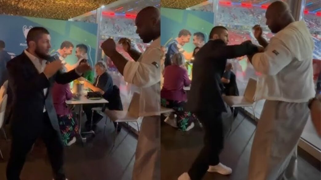 Tous deux supporters du PSG, Khabib Nurmagomedov (29-0) et Teddy Riner ont été aperçus ensemble à Munich pour la finale de la Ligue des champions. L’occasion pour les deux légendes d’échanger sur leurs univers respectifs. Pour rappel, l’un détient onze titres de champion du monde, trois médailles d’or olympiques en individuel (2012, 2016, 2024) et deux par équipes mixtes (2021, 2024) quand l’autre est invaincu en MMA. Pourtant, le courant passe immédiatement entre eux. Sur les réseaux sociaux, plusieurs vidéos ont montré les deux hommes en train d’échanger des techniques de combat, toujours dans une ambiance détendue. Le judoka, encore en convalescence après une opération du coude, a semblé apprécier ce moment d’apprentissage.