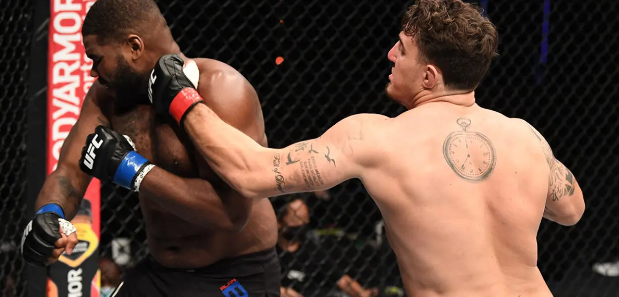 En short-notice, et chez les lourds, le Français Alan Baudot faisait ses débuts face au dangereux Tom Aspinall. Arrivé à Abu Dhabi avec de belles ambitions, le Français s’est incliné par TKO au premier round suite à un ground and pound adverse. Avant cela, et malgré une belle séquence en clinch contre la cage (et des coudes en contre), le Frenchie avait été dominé par l’agressivité et la présence physique imposée par Aspinall. Sur une série de 5 victoires consécutives désormais, le coéquipier de Darren Till souhaite affronter Sergey Spivak, son adversaire initial de l’UFC Fight Island 5, forfait pour cause de coronavirus.