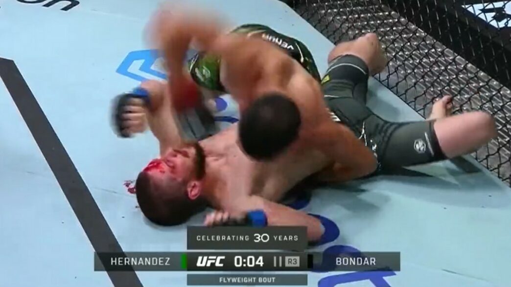 Grâce un travail de ground-and-pound à peine croyable, Carlos Hernandez aura réussi à abréger la rencontre à seulement une seconde de la fin du temps réglementaire. Recevant une quantité astronomique de coups, Denys Bondar s’est peu à peu laissé dépasser par les événements et n’a pas su trouver la clé pour se défaire des griffes de son adversaire. Officiellement, la confrontation ne s’est pas terminée par un KO, mais par une « décision technique » mise au crédit du jeune prodige de Chicago.