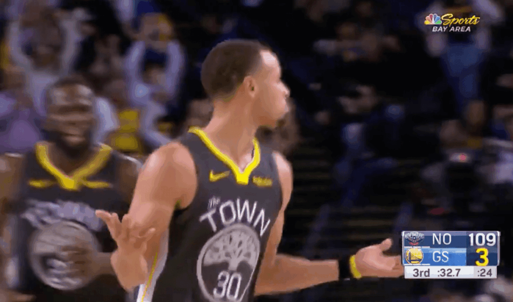 Pou la sixième victoire de suite des Golden State Warriors, Stephen Curry a pris les choses en main. Le triple champion NBA a ainsi envoyé 41 points (11 sur 22), 9 sur 17 à trois-points, 5 rebonds, 3 passes (2 TOs). Il devient ainsi le premier joueur de l’histoire à mettre 8 trois-points ou plus pendant trois matchs de suite. Scorant 23 points lors du troisième quart-temps, il envoya 7 trois-points lors de cette même période. Absolument intouchable hier soir, il dégoûta les Pelicans.